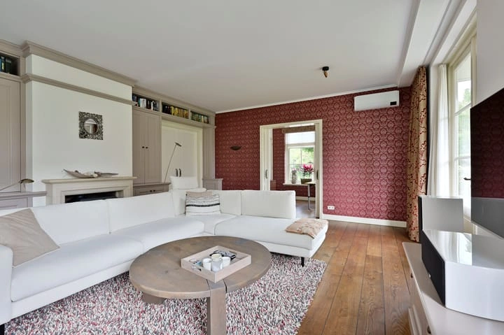 De woonkamer is indrukwekkend ruim en biedt volop privacy, maar voelt toch warm en huiselijk aan. Geniet van een glas wijn bij het knisperende vuur van de stijlvolle houtkachel. Bovendien zorgen de op maat gemaakte en-suite deuren naar de studeerkamer, de hoge plafonds en de verlichting voor een rijke ambiance. De interieurontwerper heeft hier echt vakmanschap geleverd en dat zie je terug in elk detail.